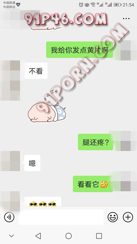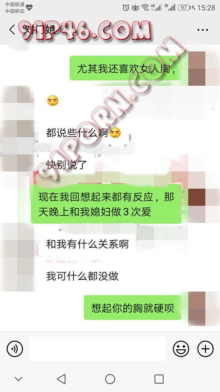 昨天,她上午去逛街了,我俩没怎么聊。下午她回家后我俩聊会,当时她老公就在她旁边她还和我调情,我发一张我穿睡裤的晨勃照片给她看,第一次发我没敢太暴露。她没骂人,还发“哇”表情,说:吓唬谁呢?我说:吓唬你呢,她发一张含羞表情。嘿嘿,我约她晚上请她吃饭,她说:晚上不行,得看孩子。我说白天呢?她没回复我着急去接孩子。